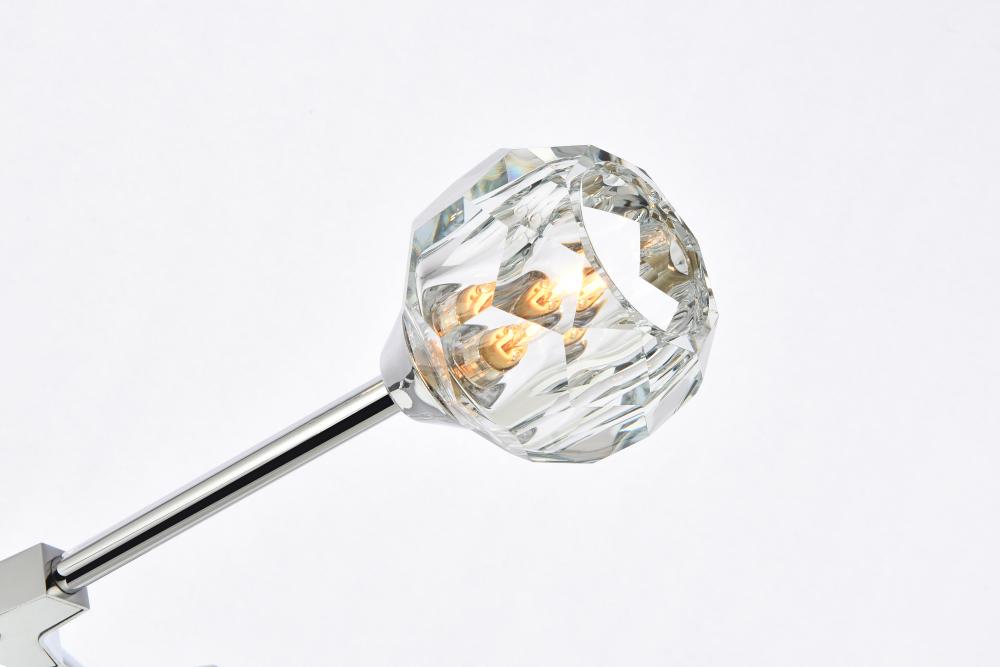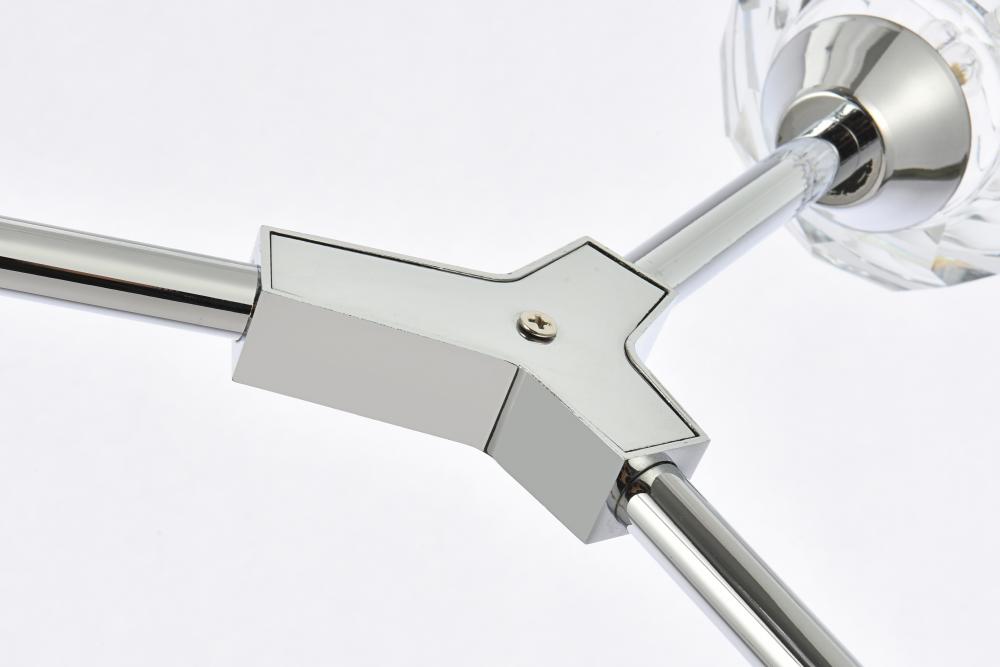 Hexagonal and pentagonal facets on the 4 inch crystal spheres tastefully diffuses the soft illumination from each arm