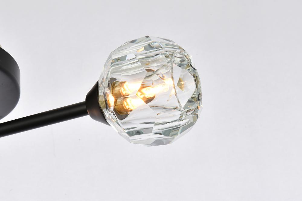 Crafted from iron metal and crystal, it features a round canopy and arms extended with solid K9 crystal ball from the rod on either side for a modern and linear look. Each 20W G9 bulb ( not included) is diffused by a faceted clear crystal ball giving the fixture a touch of industrial and glam inspiration. This work of art will add an artful focal point to your entryway, dining room, kitchen, or office. Evoking a sophisticated and timeless aesthetic to any space and will be an instant conversation started with its finely faceted crystal sphere which is polished by hand to reflect and refract light. Available in three different finishes in gold, chrome, and black.