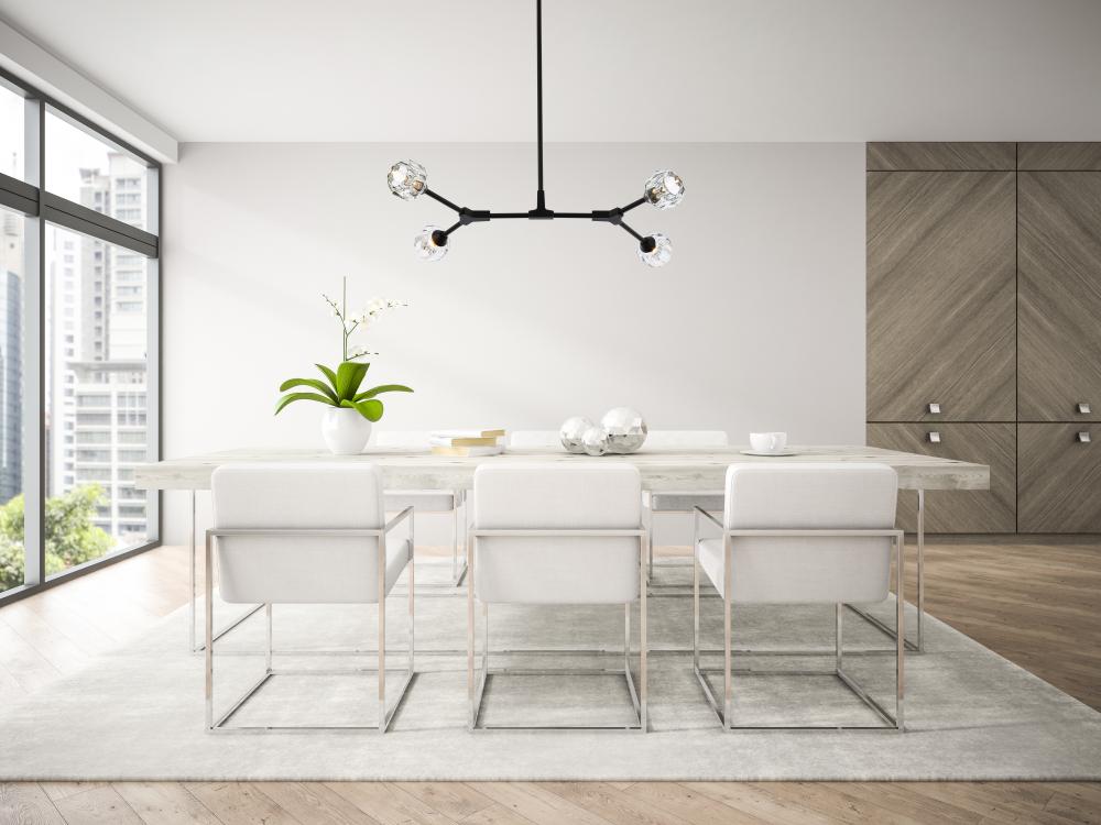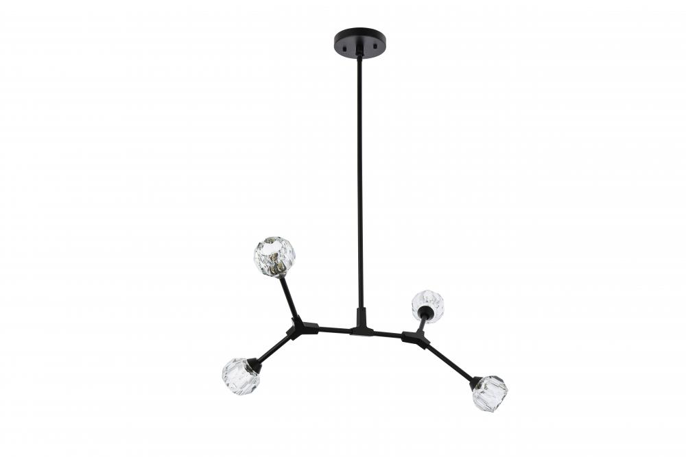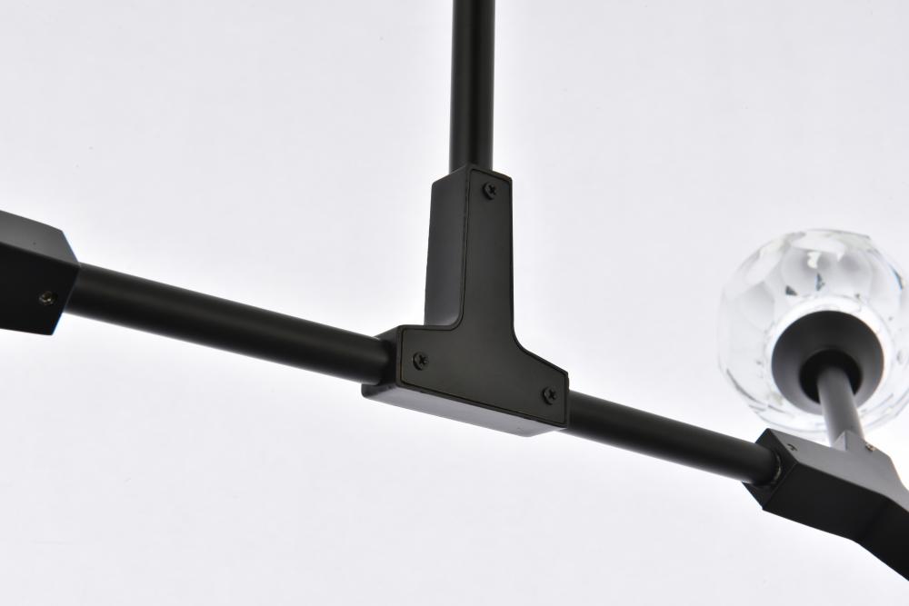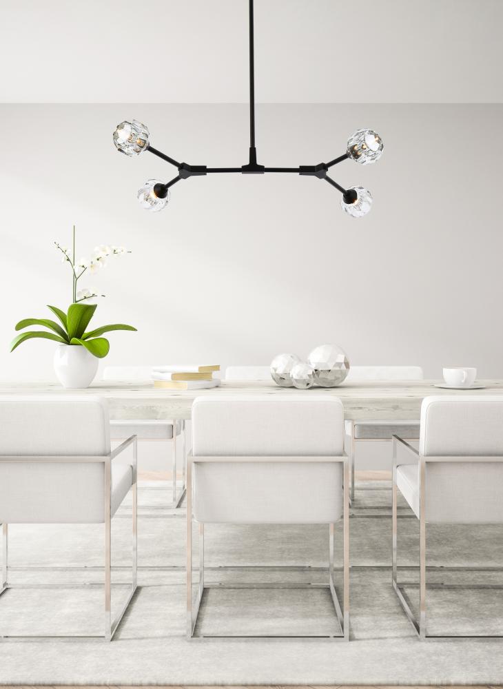 Crafted from iron metal and crystal, it features a round ceiling canopy, a hanging rod of 46 inch long, and arms extended with a solid K9 crystal ball from rods at all angles for a modern and linear look. Each 20W G9 bulb ( not included) is diffused by a faceted clear crystal ball giving the fixture a touch of industrial and glam inspiration. This work of art will add an artful focal point to your entryway, dining room, kitchen, or office. Evoking a sophisticated and timeless aesthetic to any space and will be an instant conversation started with its finely faceted crystal sphere which is polished by hand to reflect and refract light. Available in three different finishes in gold, chrome, and black.