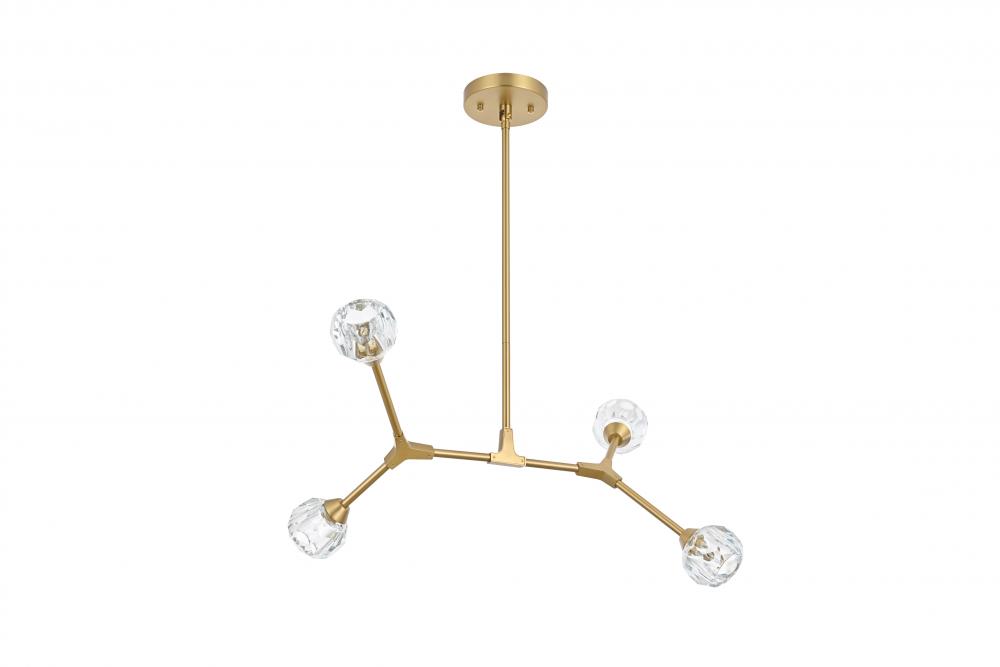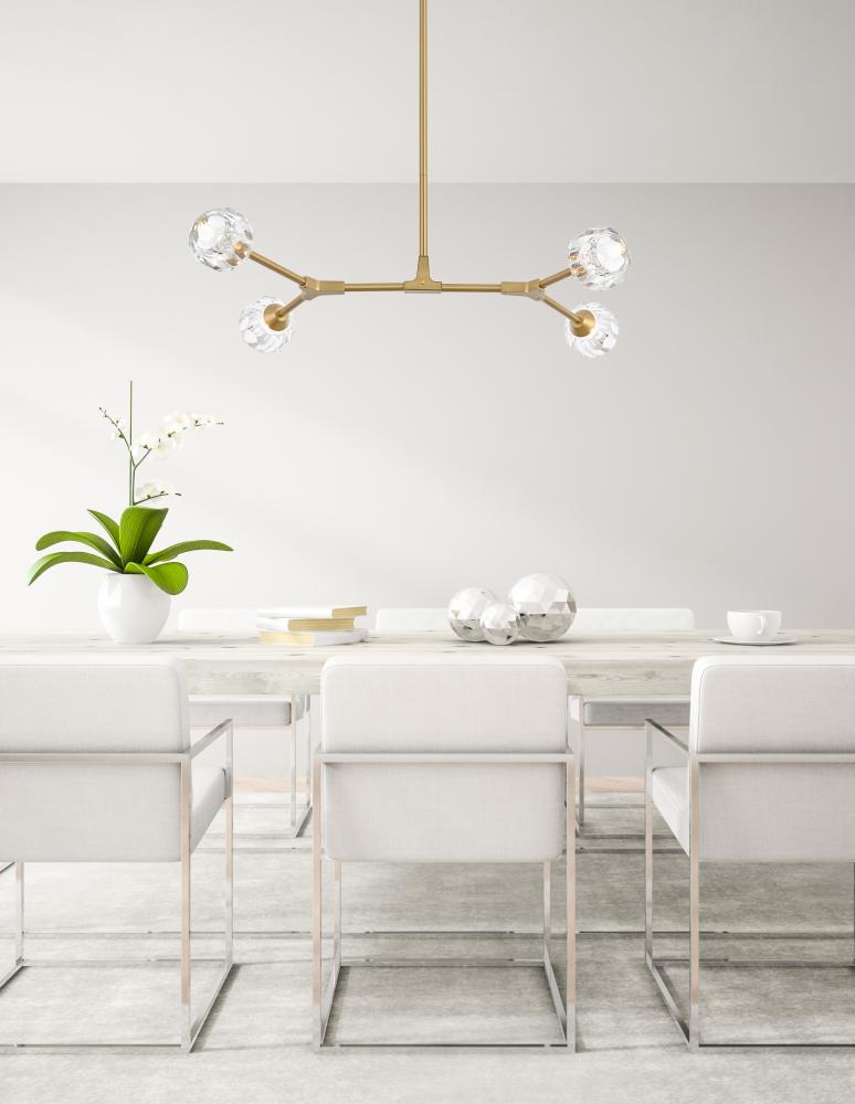 Crafted from iron metal and crystal, it features a round ceiling canopy, a hanging rod of 46 inch long, and arms extended with a solid K9 crystal ball from rods at all angles for a modern and linear look. Each 20W G9 bulb ( not included) is diffused by a faceted clear crystal ball giving the fixture a touch of industrial and glam inspiration. This work of art will add an artful focal point to your entryway, dining room, kitchen, or office. Evoking a sophisticated and timeless aesthetic to any space and will be an instant conversation started with its finely faceted crystal sphere which is polished by hand to reflect and refract light. Available in three different finishes in gold, chrome, and black.