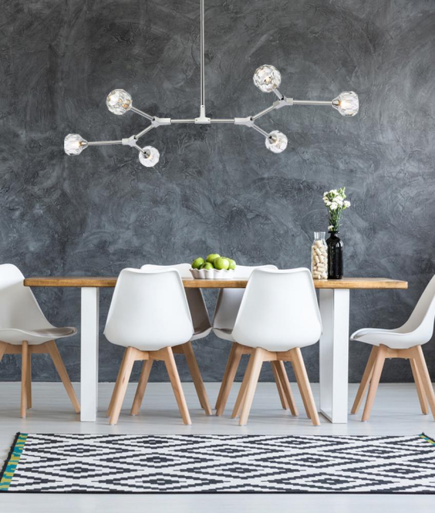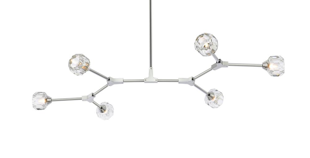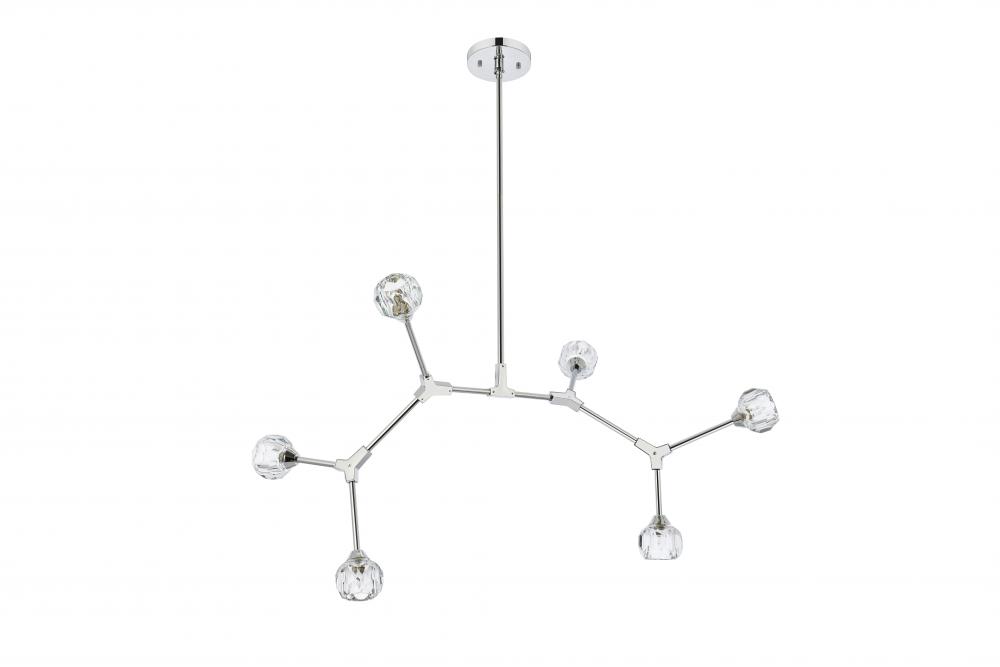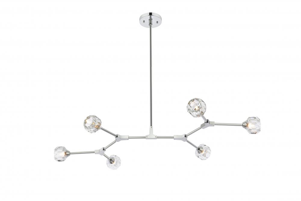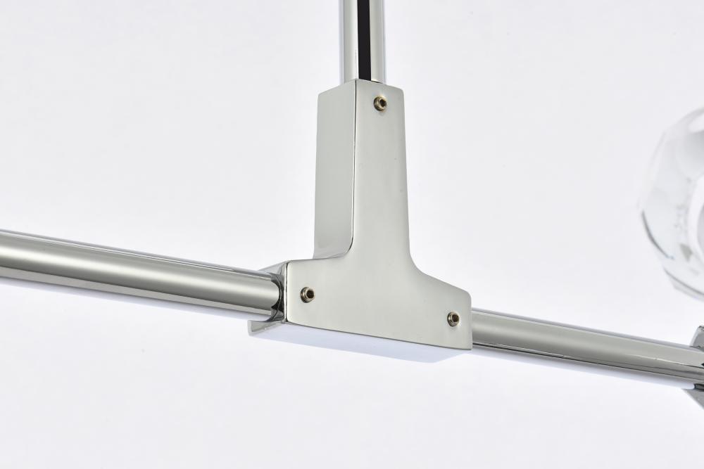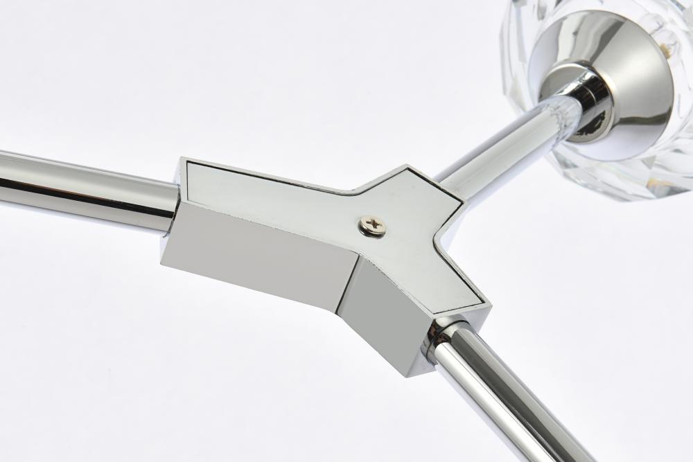 Crafted from iron metal and crystal, it features a round ceiling canopy, a hanging rod of 46 inch long, and arms extended with a solid K9 crystal ball from rods at all angles for a modern and linear look. Each 20W G9 bulb ( not included) is diffused by a faceted clear crystal ball giving the fixture a touch of industrial and glam inspiration. This work of art will add an artful focal point to your entryway, dining room, kitchen, or office. Evoking a sophisticated and timeless aesthetic to any space and will be an instant conversation started with its finely faceted crystal sphere which is polished by hand to reflect and refract light. Available in three different finishes in gold, chrome, and black.