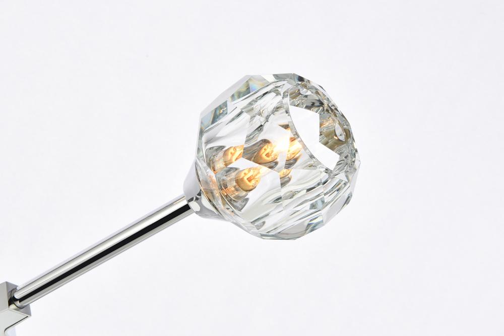 Hexagonal and pentagonal facets on the 4 inch crystal spheres tastefully diffuses the soft illumination from each arm
