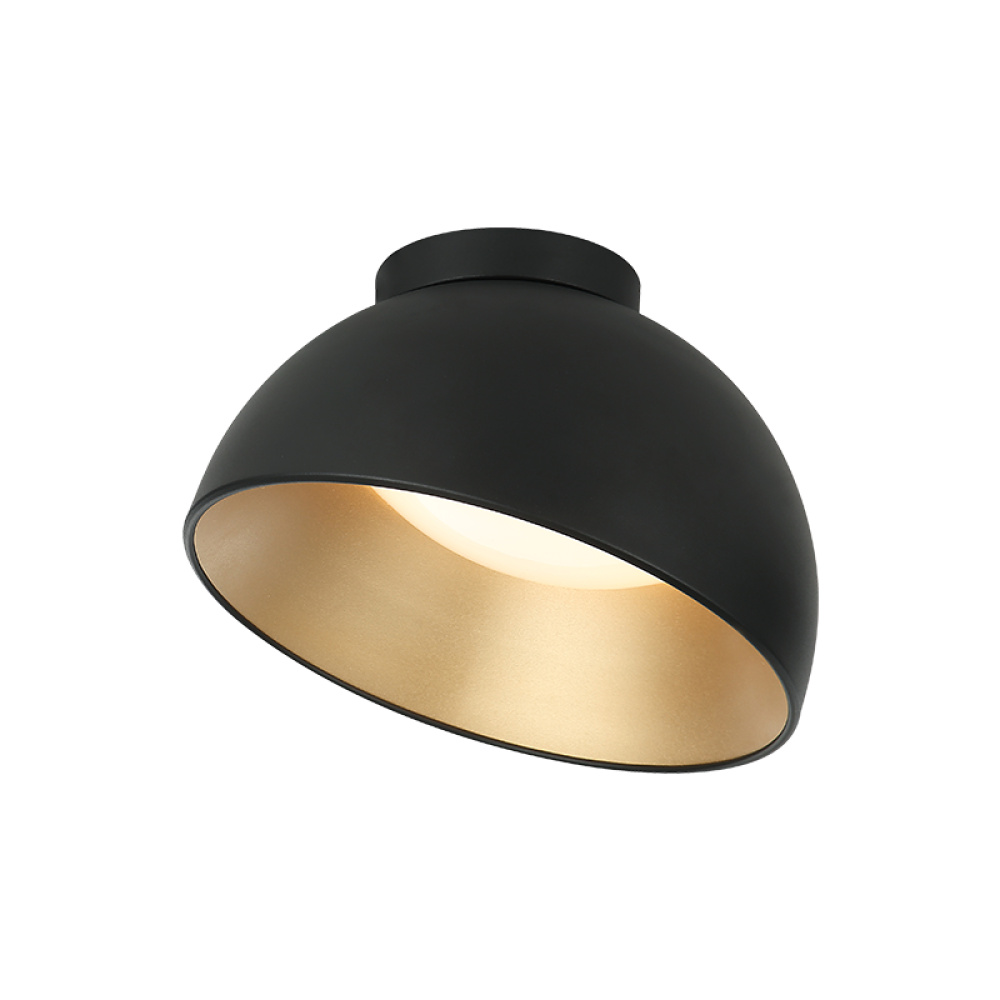 This is a lovely flush mount light! The Zenith is a sleek, modern look. The way the light is partially shielded by the outer shell creates a focused glow that would add a sophisticated touch to a space. The design makes it ideal for areas where you want both style and subtle lighting. It swivels for directional light and comes in Matte Black or Matte White with a gold interior.