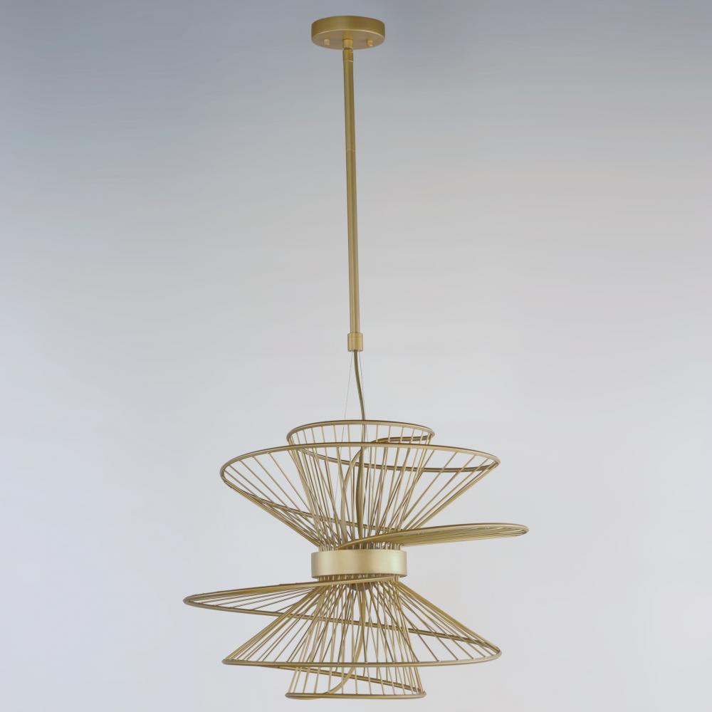 A geometrical marvel of design and craft, the Zeta collection's abstract form seemingly twirls as if in movement. An elusive orb of clear glass casts light both up and downward through indelicate steel spindles in your choice of Natural Aged Brass, Mat