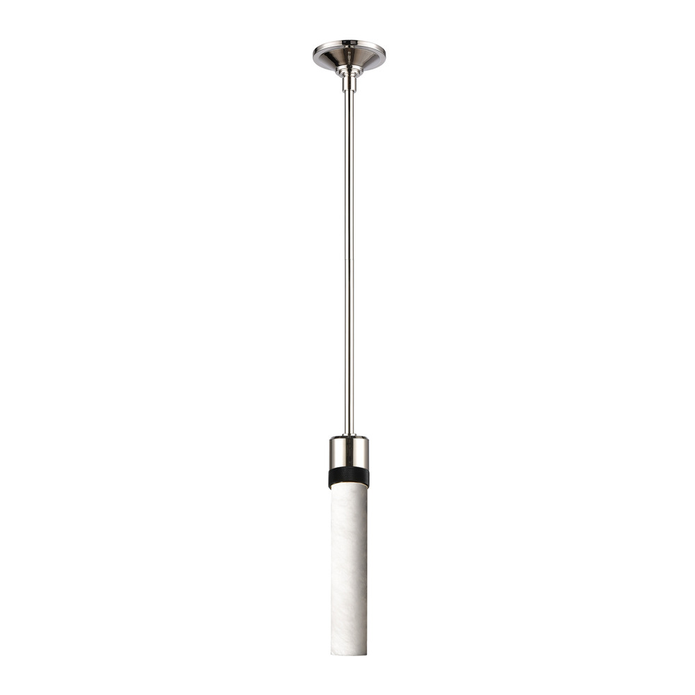 3" High End Vertical Cylindrical Pendant Light, 12" Authentic Spanish Alabaster Shade and Our Luxurious Polished Nickel Finish with Detailed Satin Brushed Black Diamond Knurled Metal Band. E26 Medium Base Socket for 12" T10 Filament LED Bulb Not Included.