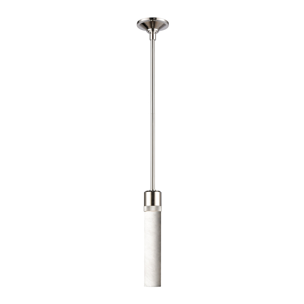 Zigrina 12" Alabaster E26 Pendant with Knurled Ring Polished Nickel