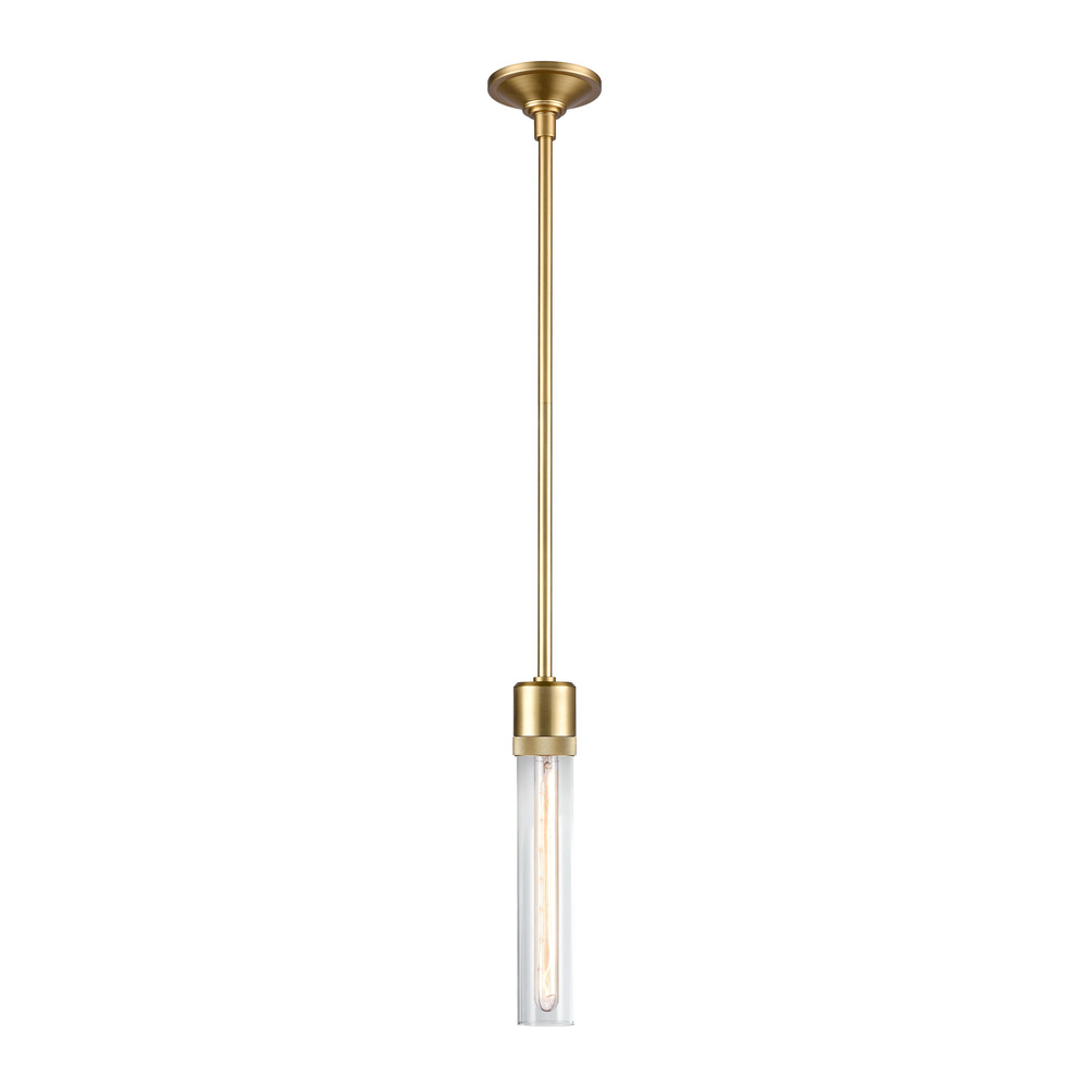 3" High End Vertical Cylindrical Pendant Light, 12" Clear Transparent Glass Shade and Our Premium Aged Brass Finish with Detailed Diamond Knurled Metal Band. E26 Medium Base Socket for 12" T10 Filament LED Bulb Not Included.