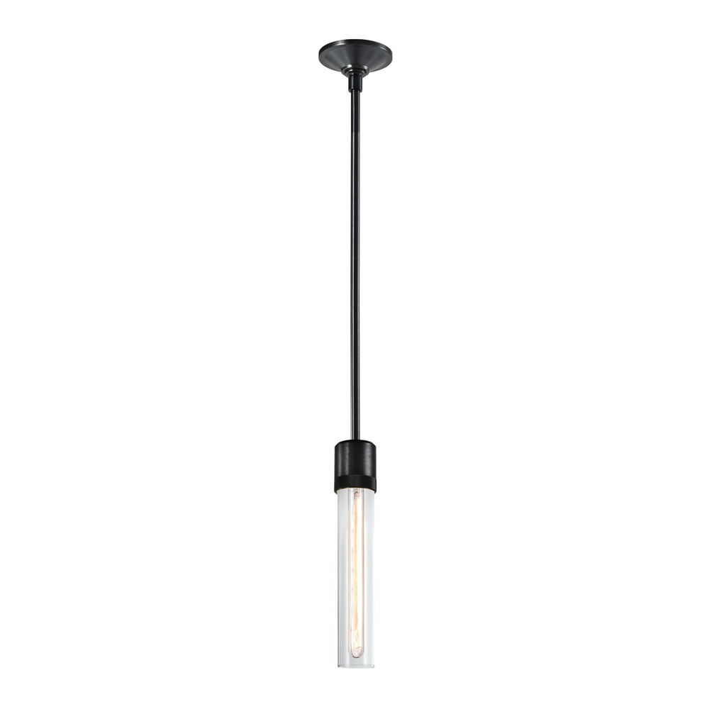 3" High End Vertical Cylindrical Pendant Light, 12" Clear Transparent Glass Shade and Our Sleek Satin Brushed Black Finish with Detailed Diamond Knurled Metal Band. E26 Medium Base Socket for 12" T10 Filament LED Bulb Not Included.