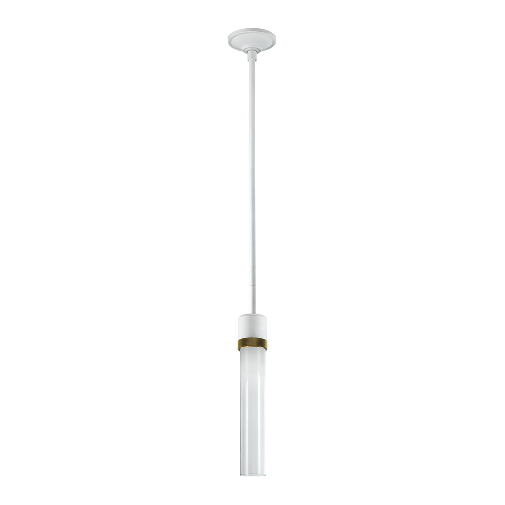 Zigrina 12" Clear Glass LED Pendant in Matte White and Aged Brass Knurled Ring