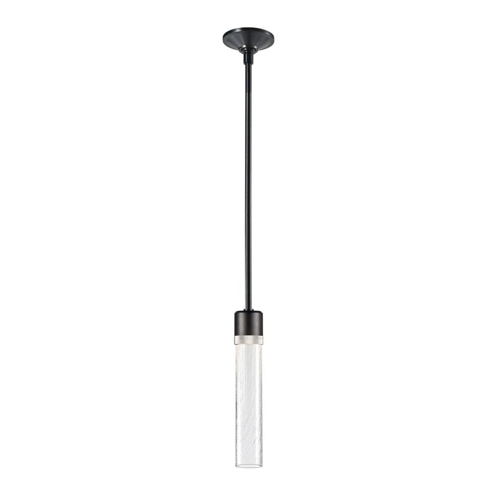 3" High End Vertical Cylindrical Pendant Light, 12" Eye Catching Crackled Glass Shade and Our Sleek Satin Brushed Black Finish with Detailed Polished Nickel Diamond Knurled Metal Band. Integrated Replaceable LED with 3CCT 3000K, 3500K and 4000K.