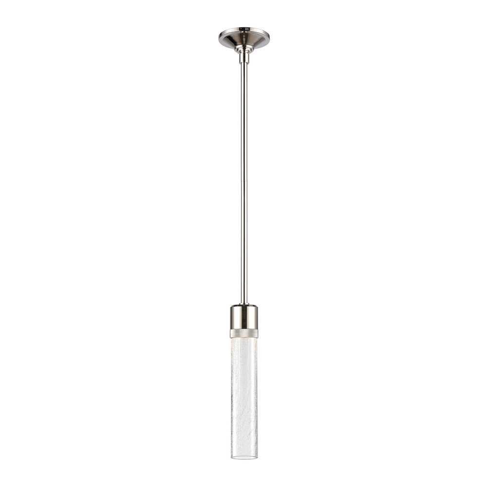 3" High End Vertical Cylindrical Pendant Light, 12" Eye Catching Crackled Glass Shade and Our Luxurious Polished Nickel Finish with Detailed Diamond Knurled Metal Band. Integrated Replaceable LED with 3CCT 3000K, 3500K and 4000K.