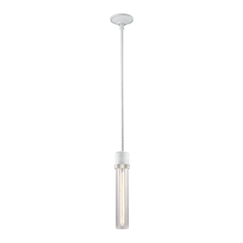 Zigrina 12" Fluted Glass E26 Pendant in White with Knurled Ring in Nickel