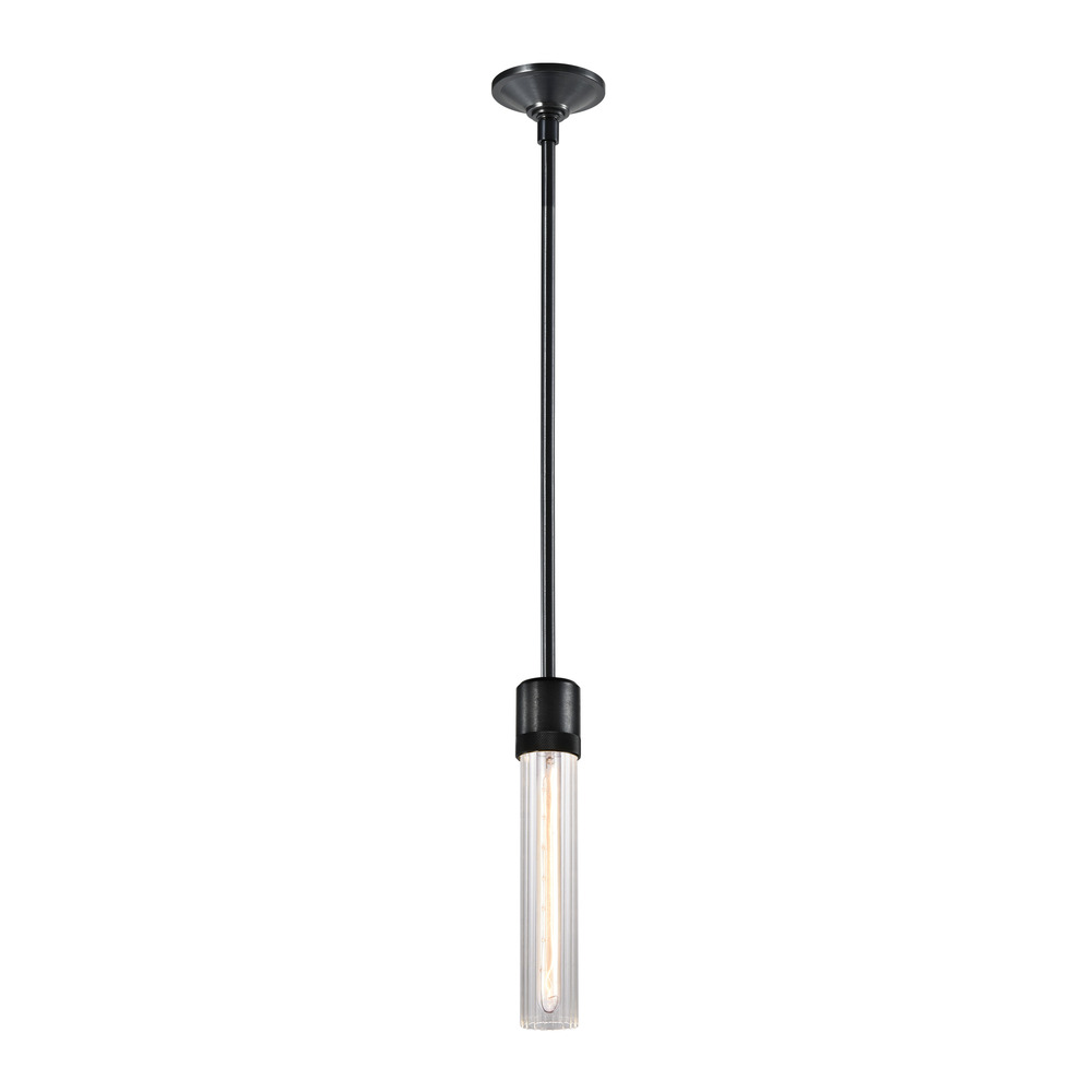 3" High End Vertical Cylindrical Pendant Light, 12" Fluted Glass Shade and Our Sleek Satin Brushed Black Finish with Detailed Diamond Knurled Metal Band. E26 Medium Base Socket for 12" T10 Filament LED Bulb Not Included.