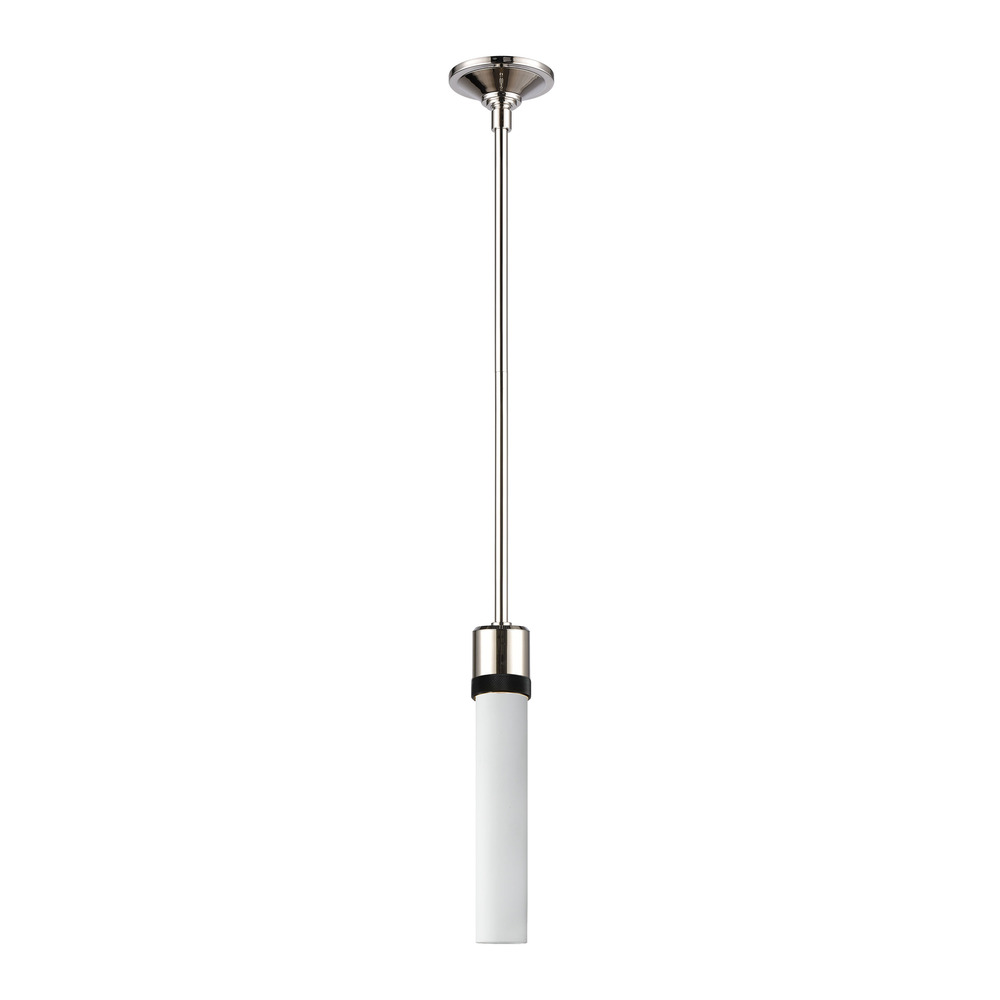3" High End Vertical Cylindrical Pendant Light, 12" Smooth Frosted White Glass Shade and Our Luxurious Polished Nickel Finish with Detailed Satin Brushed Black Diamond Knurled Metal Band. E26 Medium Base Socket for 12" T10 Filament LED Bulb Not Included.