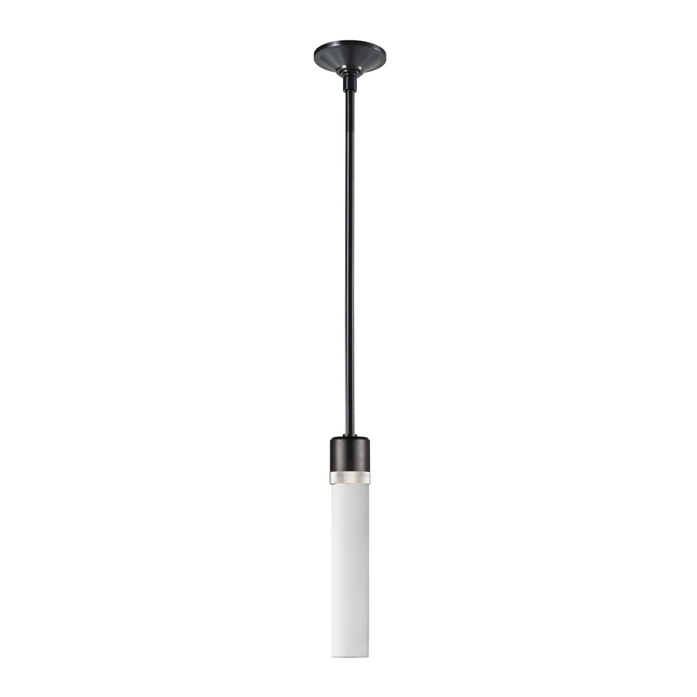 3" High End Vertical Cylindrical Pendant Light, 12" Smooth Frosted White Glass Shade and Our Sleek Satin Brushed Black Finish with Detailed Polished Nickel Diamond Knurled Metal Band. E26 Medium Base Socket for 12" T10 Filament LED Bulb Not Included.