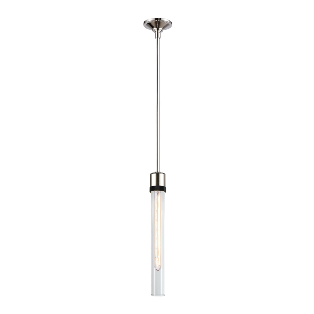 3" High End Vertical Cylindrical Pendant Light, 18" Clear Transparent Glass Shade and Our Luxurious Polished Nickel Finish with Detailed Satin Brushed Black Diamond Knurled Metal Band. E26 Medium Base Socket for 12" T10 Filament LED Bulb Not Included.