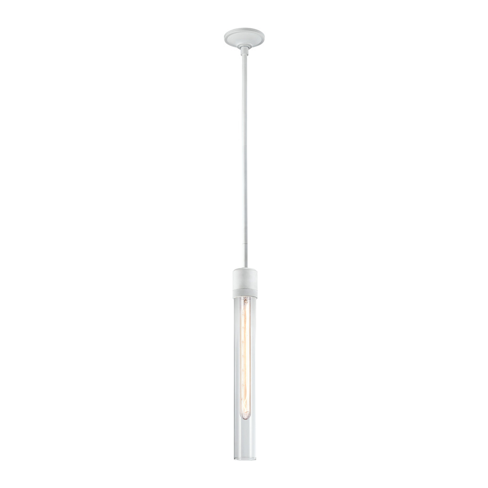3" High End Vertical Cylindrical Pendant Light, 18" Clear Transparent Glass Shade and Our Chic Matte White Finish with Detailed Diamond Knurled Metal Band. E26 Medium Base Socket for 12" T10 Filament LED Bulb Not Included.