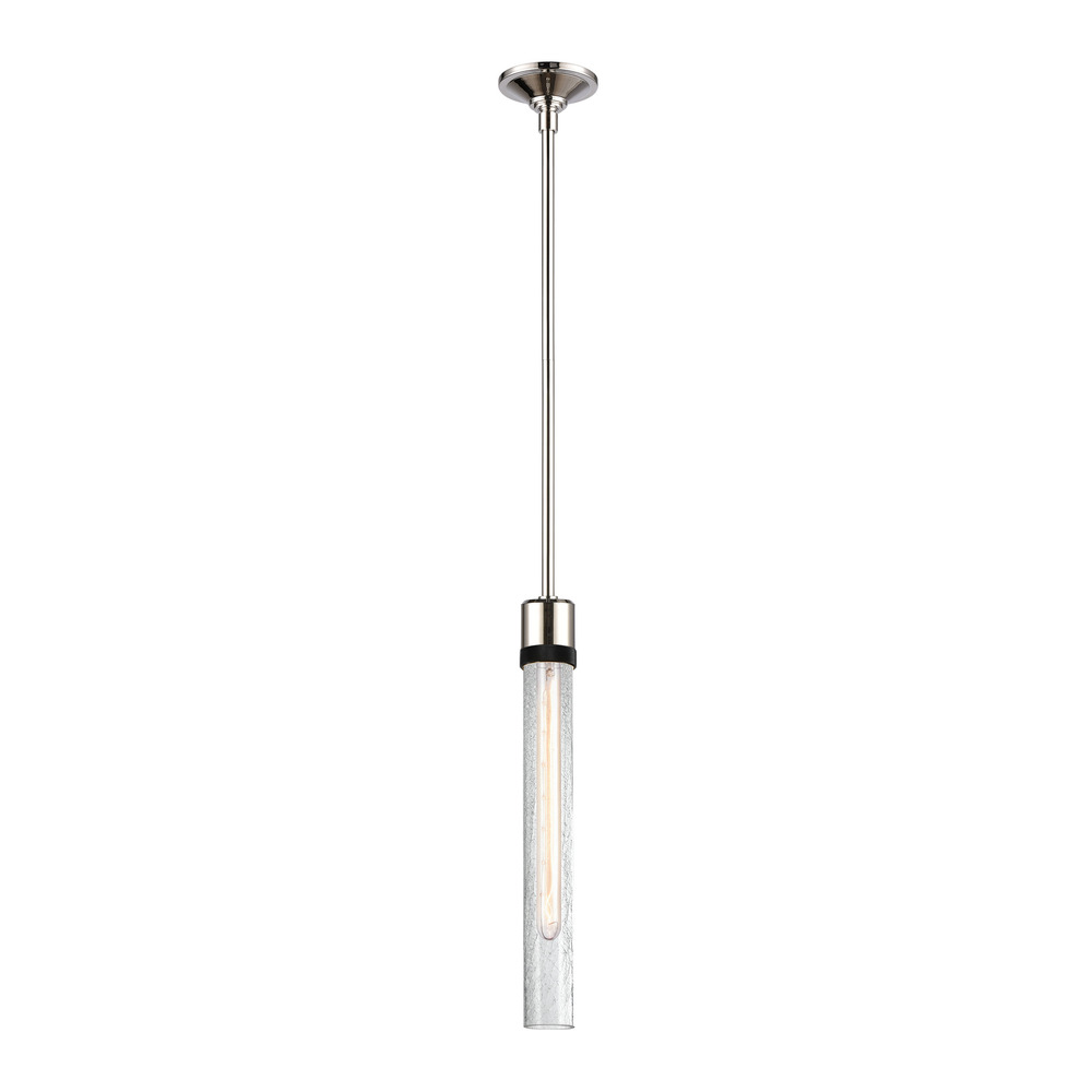 3" High End Vertical Cylindrical Pendant Light, 18" Eye Catching Crackled Glass and Our Luxurious Polished Nickel Finish with Detailed Satin Brushed Black Diamond Knurled Metal Band. E26 Medium Base Socket for 12" T10 Filament LED Bulb Not Included.