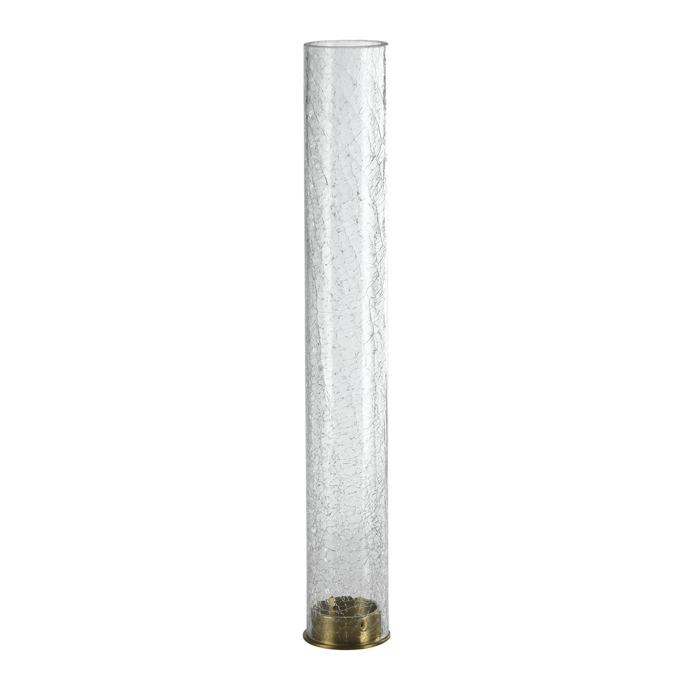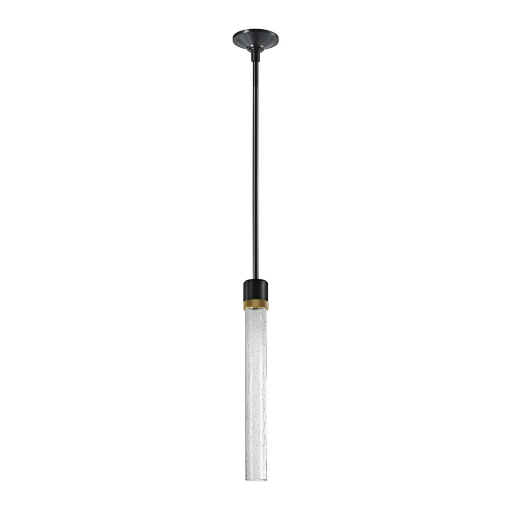 3" High End Vertical Cylindrical Pendant Light, 18" Eye Catching Crackled Glass Shade and Our Sleek Satin Brushed Black Finish with Detailed Aged Brass Diamond Knurled Metal Band. Integrated Replaceable LED with 3CCT 3000K, 3500K and 4000K.