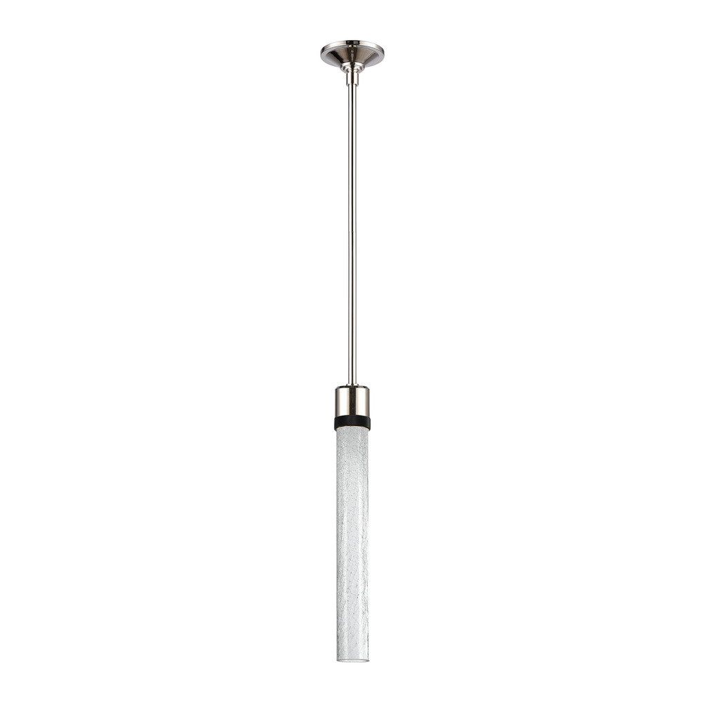 3" High End Vertical Cylindrical Pendant Light, 18" Eye Catching Crackled Glass Shade and Our Luxurious Polished Nickel Finish with Detailed Satin Brushed Black Diamond Knurled Metal Band. Integrated Replaceable LED with 3CCT 3000K, 3500K and 4000K.