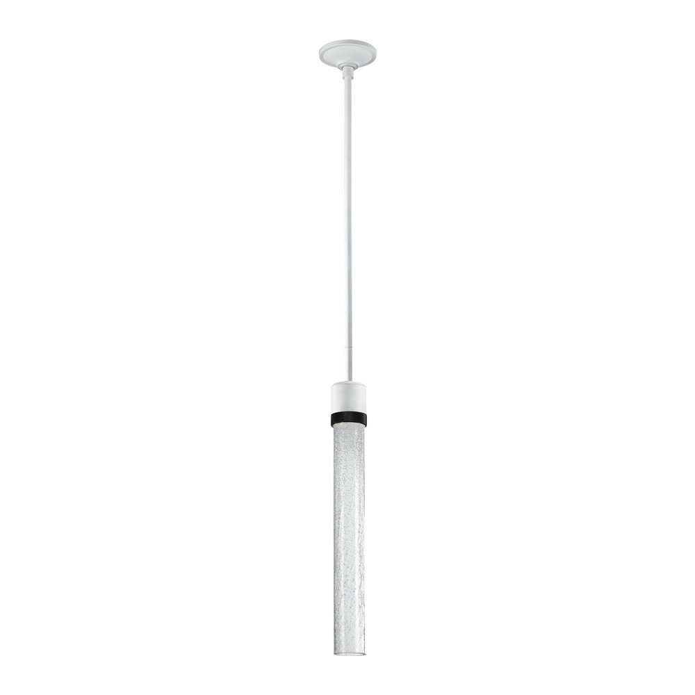 3" High End Vertical Cylindrical Pendant Light, 18" Eye Catching Crackled Glass Shade and Our Chic Matte White Finish with Detailed Satin Brushed Black Diamond Knurled Metal Band. Integrated Replaceable LED with 3CCT 3000K, 3500K and 4000K.