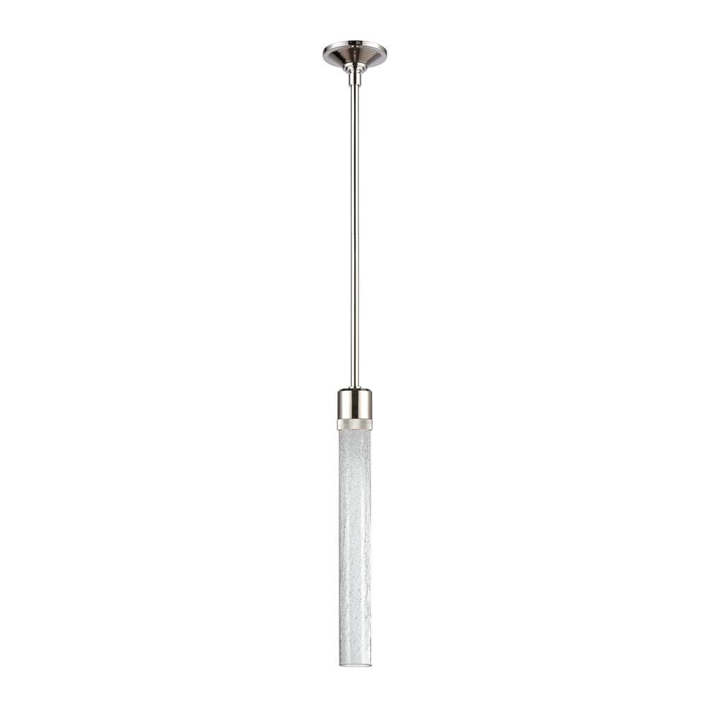 3" High End Vertical Cylindrical Pendant Light, 18" Eye Catching Crackled Glass Shade and Our Luxurious Polished Nickel Finish with Detailed Diamond Knurled Metal Band. Integrated Replaceable LED with 3CCT 3000K, 3500K and 4000K.