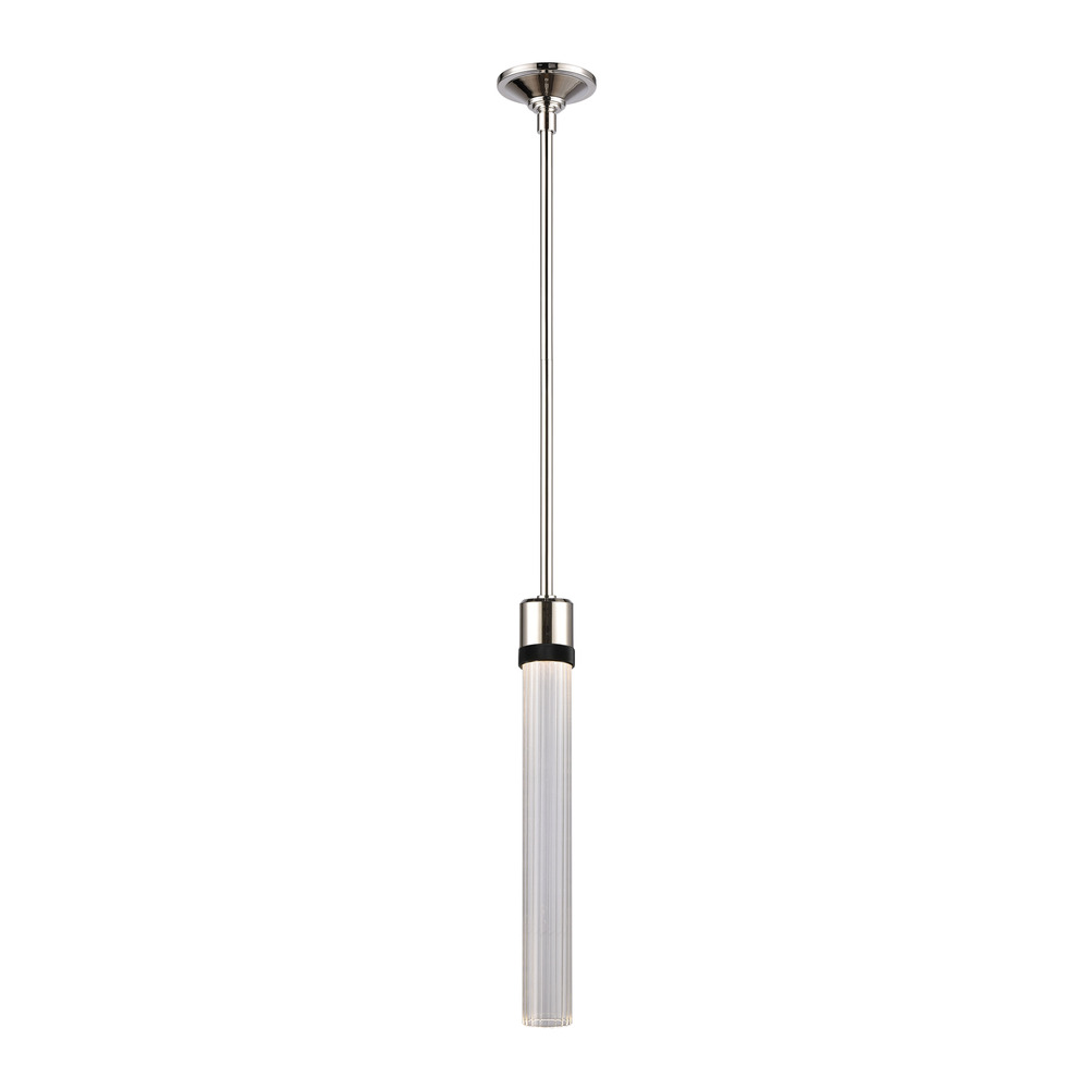 3" High End Vertical Cylindrical Pendant Light, 18" Fluted Glass Shade and Our Luxurious Polished Nickel Finish with Detailed Satin Brushed Black Diamond Knurled Metal Band. Integrated Replaceable LED with 3CCT 3000K, 3500K and 4000K.
