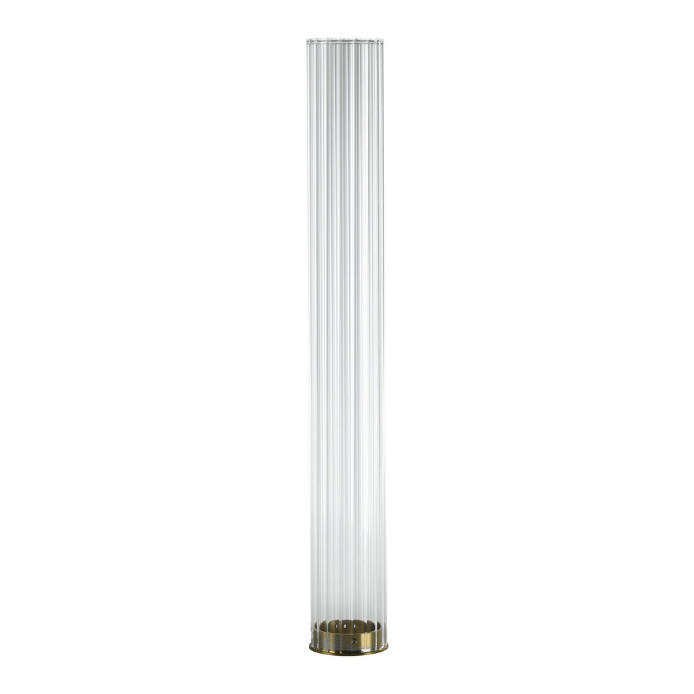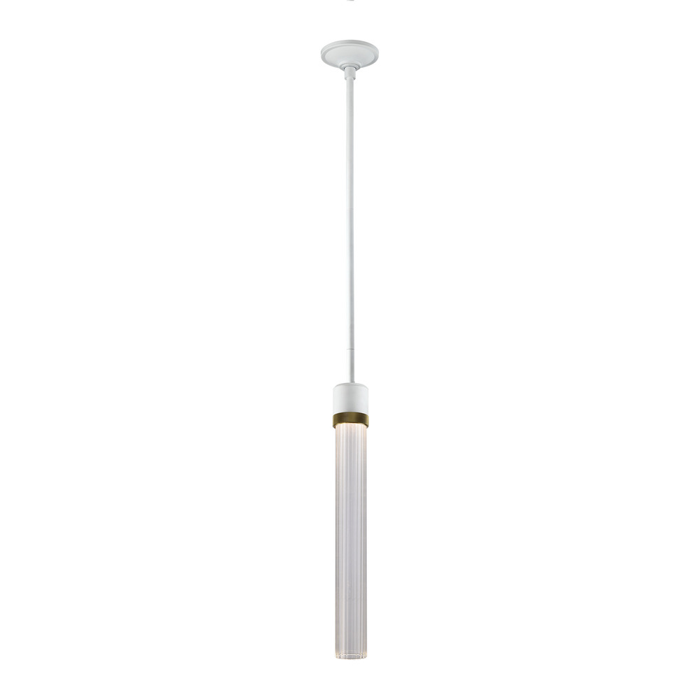 3" High End Vertical Cylindrical Pendant Light, 18" Fluted Glass Shade and Our Chic Matte White Finish with Detailed Aged Brass Diamond Knurled Metal Band. Integrated Replaceable LED with 3CCT 3000K, 3500K and 4000K.