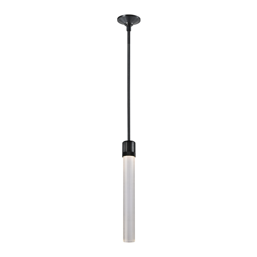 3" High End Vertical Cylindrical Pendant Light, 18" Fluted Glass Shade and Our Sleek Satin Brushed Black Finish with Detailed Diamond Knurled Metal Band. Integrated Replaceable LED with 3CCT 3000K, 3500K and 4000K.