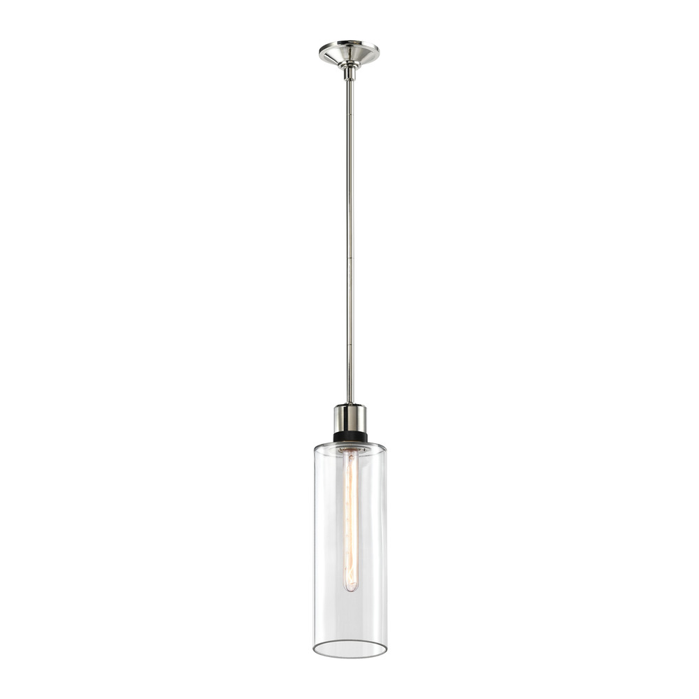 18" High End Clear Glass Drum Shade Pendant Light in Our Luxurious Polished Nickel Finish with Detailed Satin Brushed Black Diamond Knurled Metal Band. E26 Medium Base Socket for 12" T10 LED Bulb Not Included.