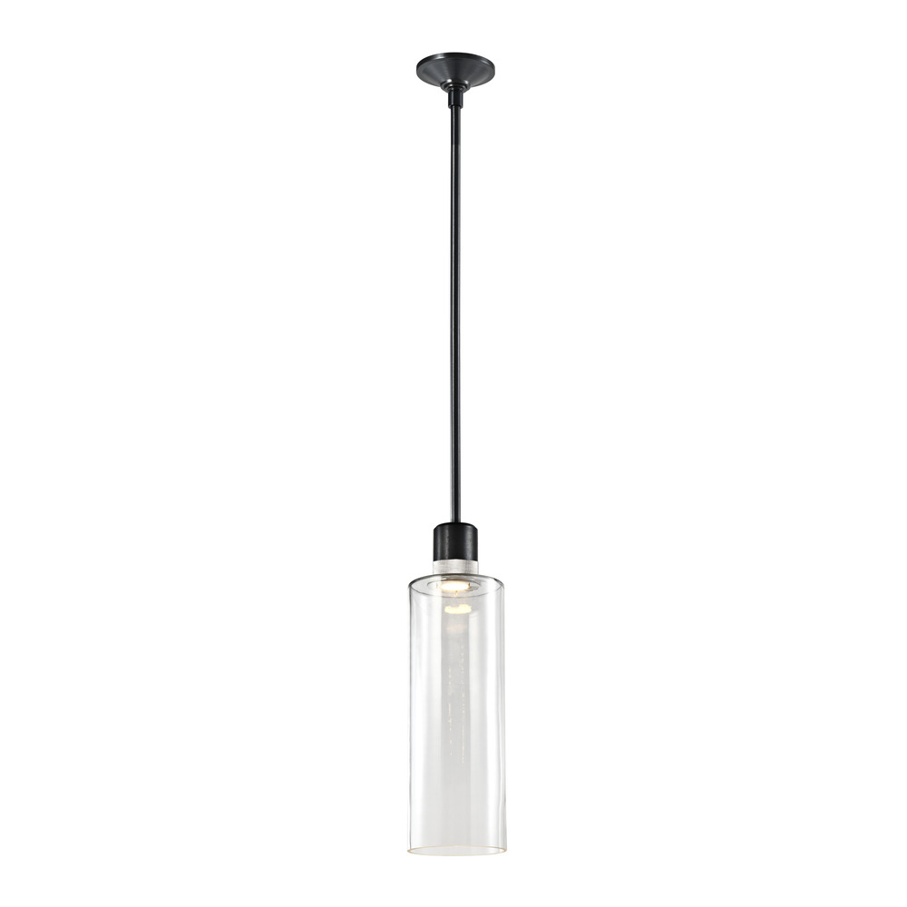 18" High End Clear Glass Drum Shade Pendant Light in Our Sleek Satin Brushed Black Finish with Detailed Polished Nickel Diamond Knurled Metal Band. Integrated Replaceable LED with 3CCT 3000K, 3500K and 4000K.