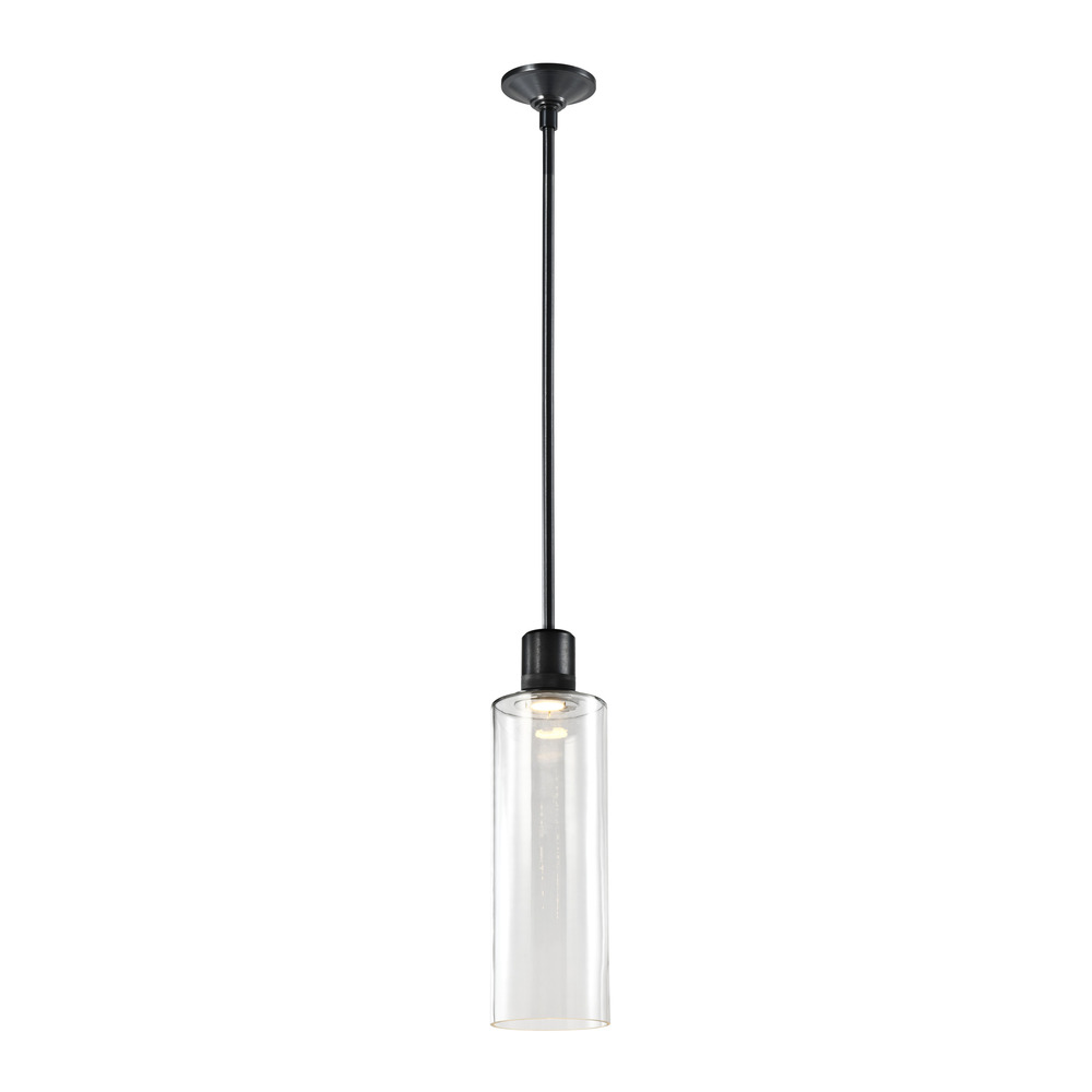 18" High End Clear Glass Drum Shade Pendant Light in Our Sleek Satin Brushed Black Finish with Detailed Diamond Knurled Metal Band. Integrated Replaceable LED with 3CCT 3000K, 3500K and 4000K.