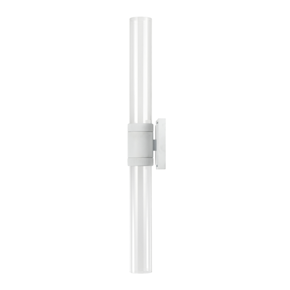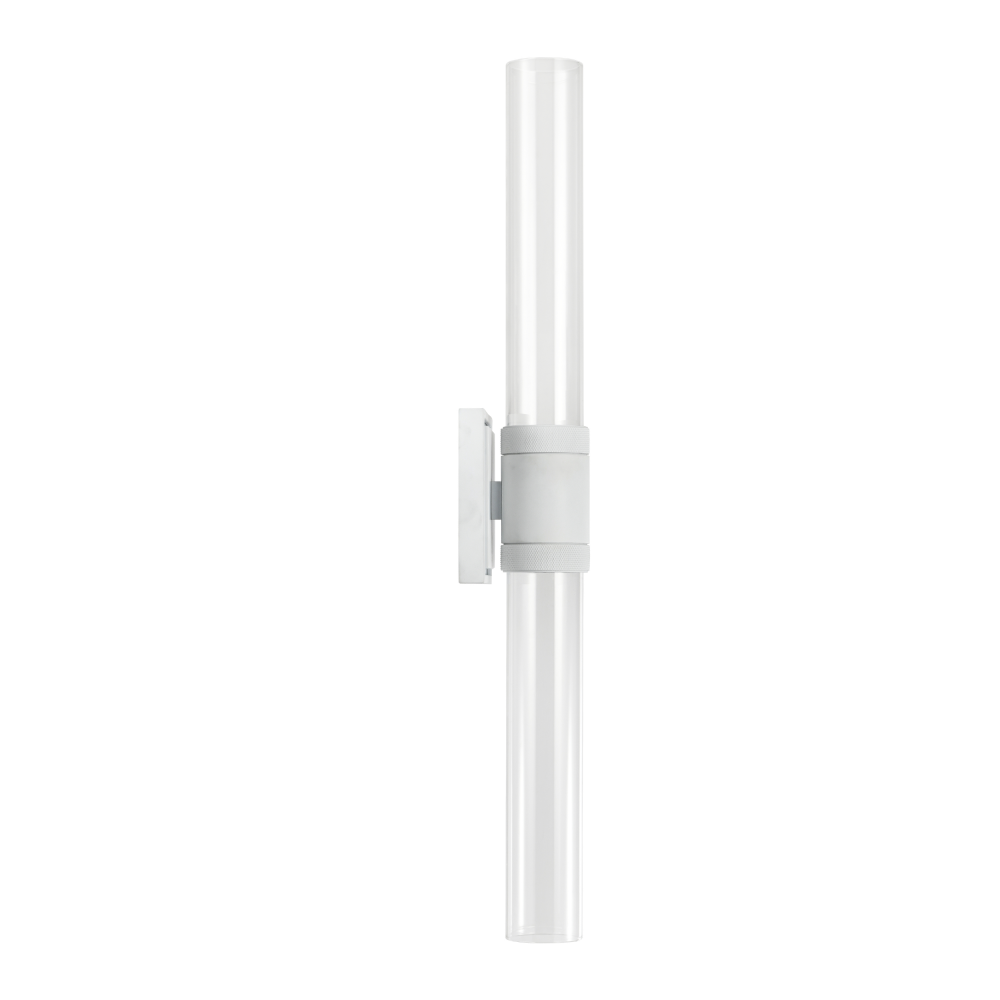High End 2-Light Duo Wall Sconce, 12" Clear Transparent Glass Shades and Our Chic Matte White Finish with Detailed Diamond Knurled Metal Bands. Integrated Replaceable LED with 3CCT 3000K, 3500K and 4000K.
