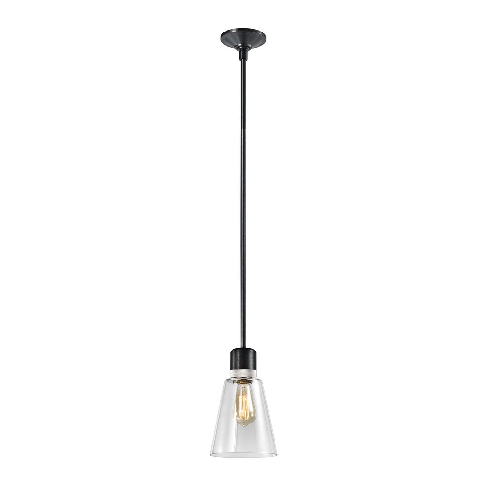 7" High End Clear Glass Bell Shade Pendant Light in Our Sleek Satin Brushed Black Finish with Detailed Polished Nickel Diamond Knurled Metal Band. E26 Medium Base Socket for ST64 Edison LED Bulb Not Included.
