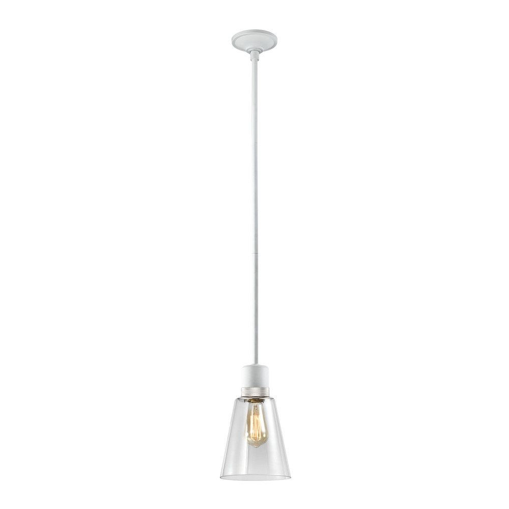 7" High End Clear Glass Bell Shade Pendant Light in Our Chic Matte White Finish with Detailed Polished Nickel Diamond Knurled Metal Band. E26 Medium Base Socket for ST64 Edison LED Bulb Not Included.