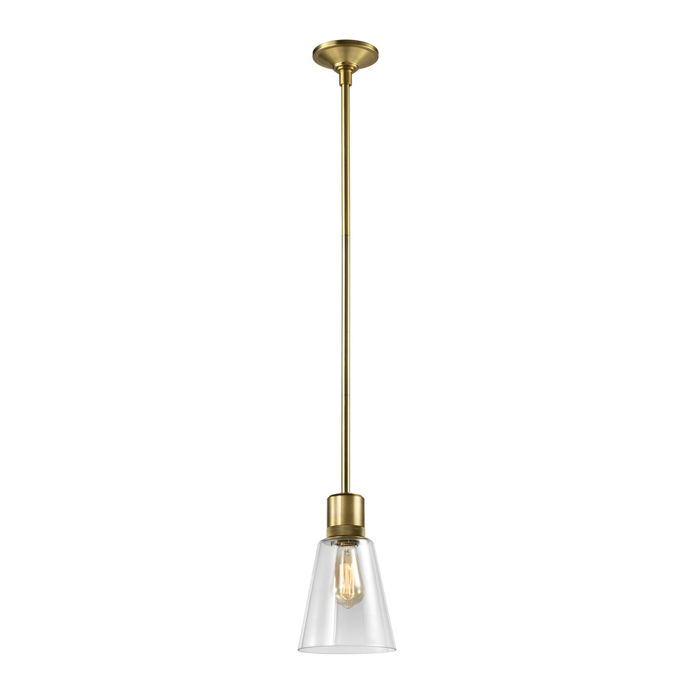 7" High End Clear Glass Bell Shade Pendant Light in Our Premium Aged Brass Finish with Detailed Diamond Knurled Metal Band. E26 Medium Base Socket for ST64 Edison LED Bulb Not Included.