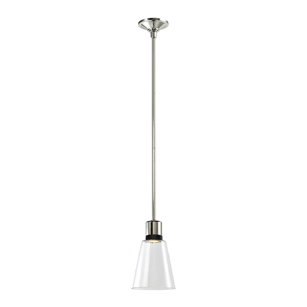 7" High End Clear Glass Bell Shade Pendant Light in Our Luxurious Polished Nickel Finish with Detailed Satin Brushed Black Diamond Knurled Metal Band. Integrated Replaceable LED with 3CCT 3000K, 3500K and 4000K.