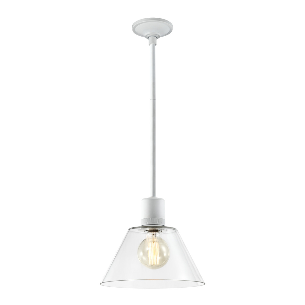 12" High End Clear Glass Cone Shade Pendant Light in Our Chic Matte White Finish with Detailed Diamond Knurled Metal Band. E26 Medium Base Socket for ST64 Edison LED Bulb Not Included.