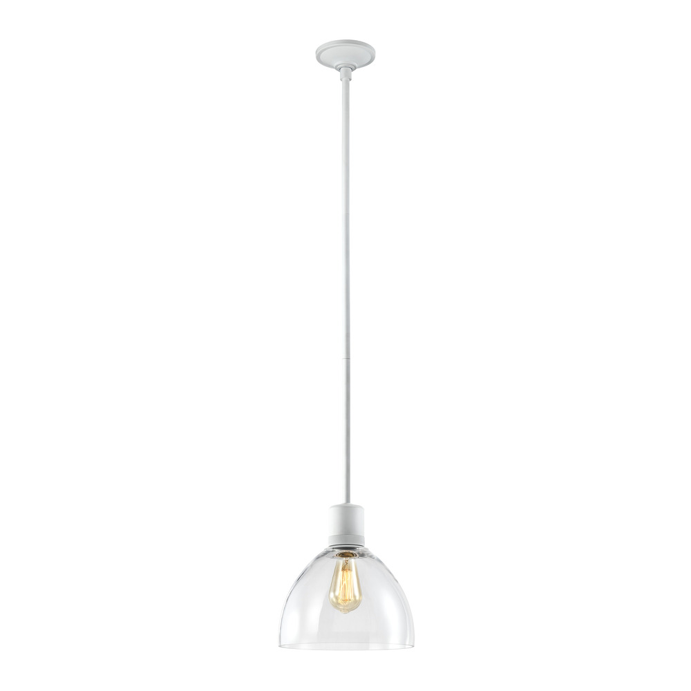 10" High End Clear Glass Dome Shade Pendant Light in Our Chic Matte White Finish with Detailed Diamond Knurled Metal Band. E26 Medium Base Socket for ST64 Edison LED Bulb Not Included.