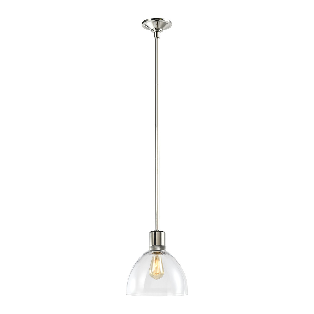 10" High End Clear Glass Dome Shade Pendant Light in Our Luxurious Polished Nickel Finish with Detailed Diamond Knurled Metal Band. E26 Medium Base Socket for ST64 Edison LED Bulb Not Included.