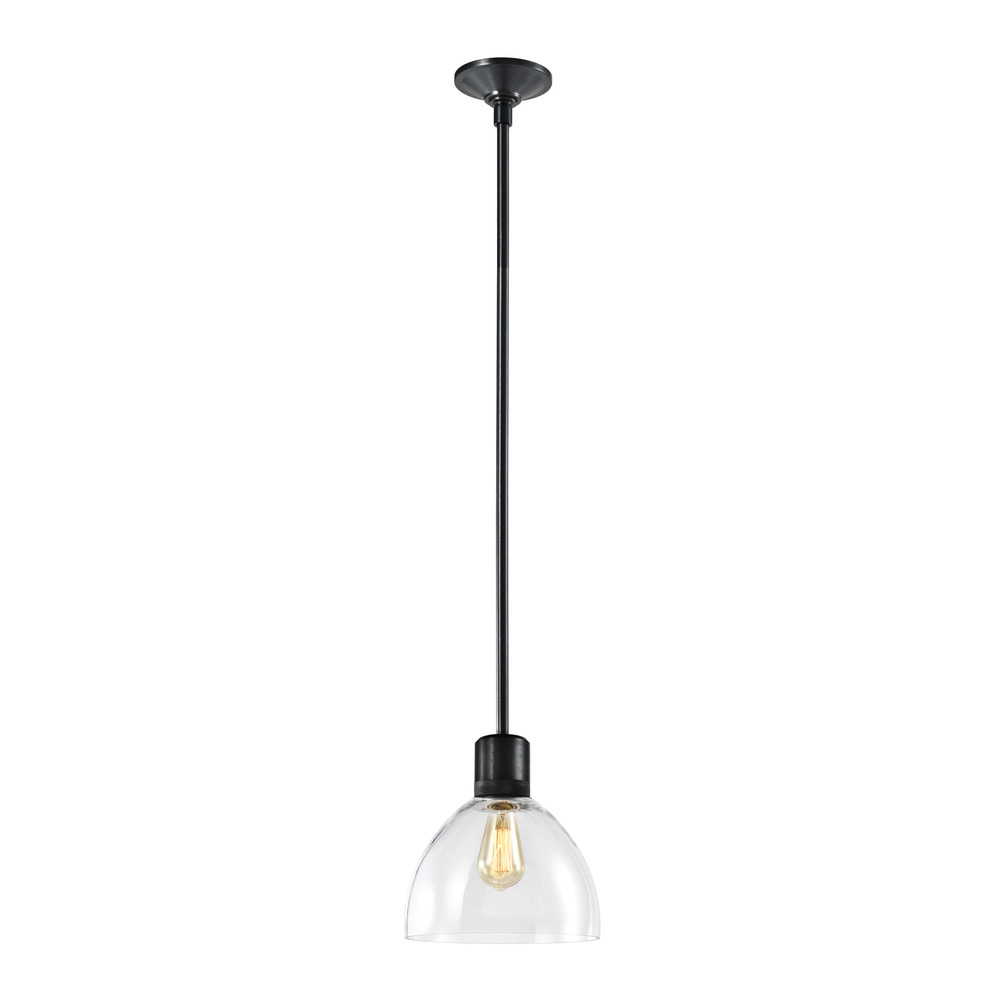 10" High End Clear Glass Dome Shade Pendant Light in Our Sleek Satin Brushed Black Finish with Detailed Diamond Knurled Metal Band. E26 Medium Base Socket for ST64 Edison LED Bulb Not Included.
