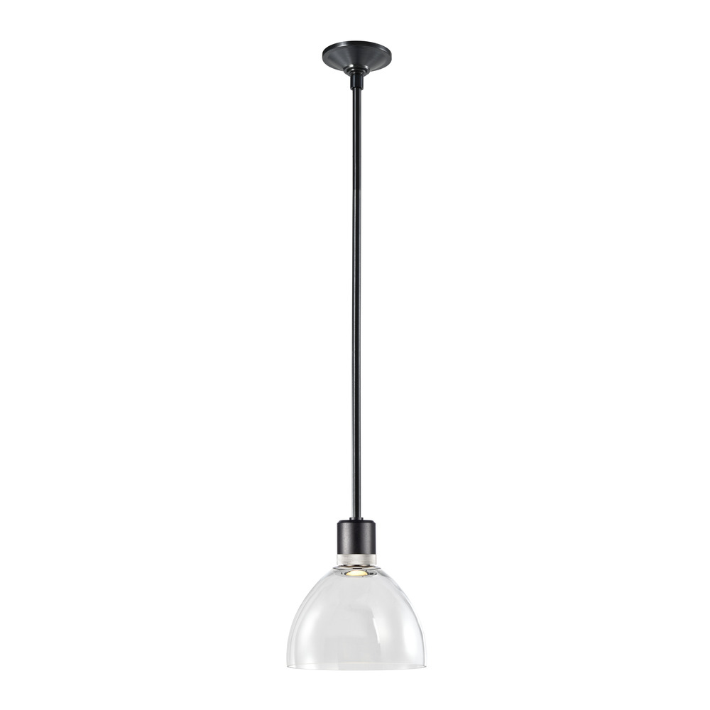 10" High End Clear Glass Dome Shade Pendant Light in Our Sleek Satin Brushed Black Finish with Detailed Polished Nickel Diamond Knurled Metal Band. Integrated Replaceable LED with 3CCT 3000K, 3500K and 4000K.