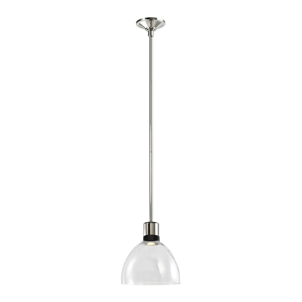 10" High End Clear Glass Dome Shade Pendant Light in Our Luxurious Polished Nickel Finish with Detailed Satin Brushed Black Diamond Knurled Metal Band. Integrated Replaceable LED with 3CCT 3000K, 3500K and 4000K.