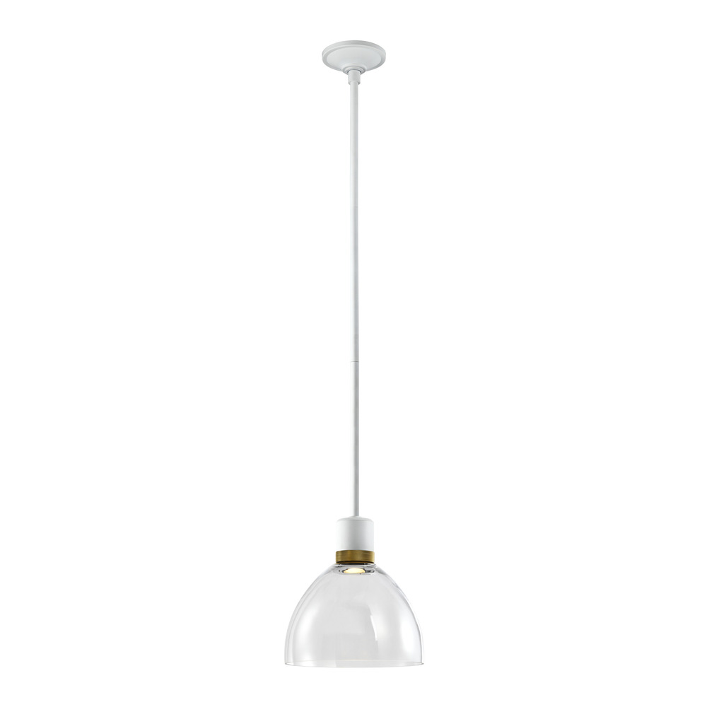 10" High End Clear Glass Dome Shade Pendant Light in Our Chic Matte White Finish with Detailed Aged Brass Diamond Knurled Metal Band. Integrated Replaceable LED with 3CCT 3000K, 3500K and 4000K.