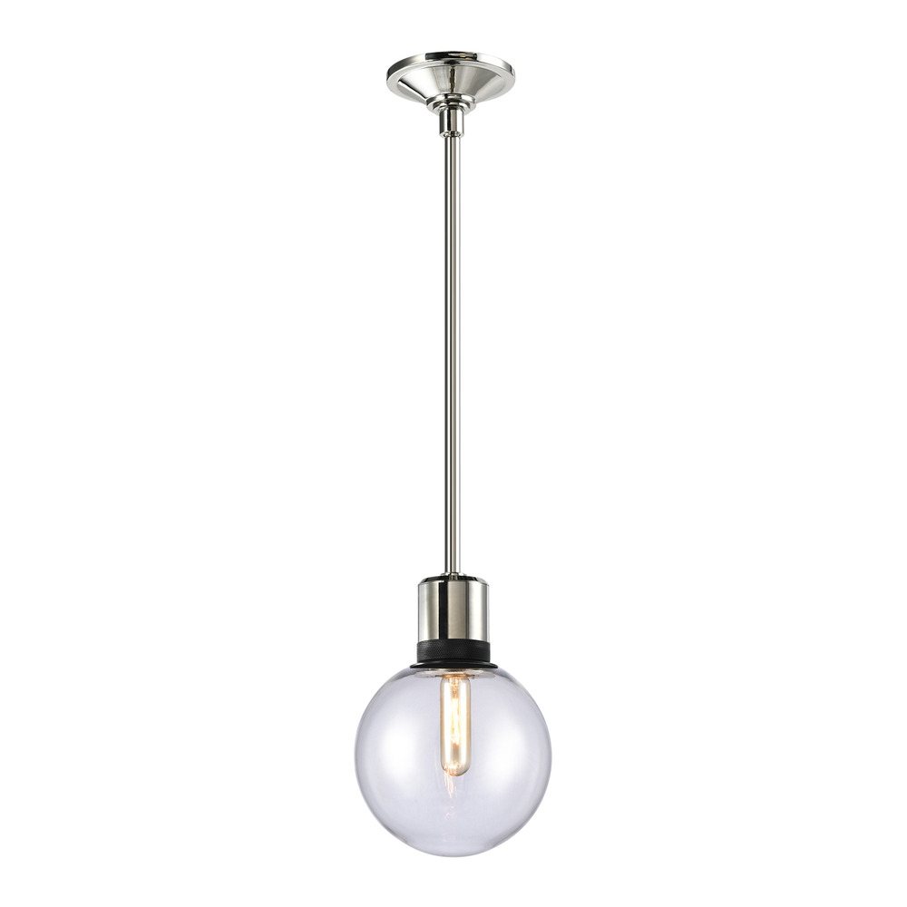 8" High End Clear Glass Globe Shade Pendant Light in Our Luxurious Polished Nickel Finish with Detailed Satin Brushed Black Diamond Knurled Metal Band. E26 Medium Base Socket for 12" T10 Filament LED Bulb Not Included.