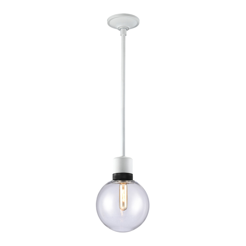 8" High End Clear Glass Globe Shade Pendant Light in Our Chic Matte White Finish with Detailed Satin Brushed Black Diamond Knurled Metal Band. E26 Medium Base Socket for 12" T10 Filament LED Bulb Not Included.