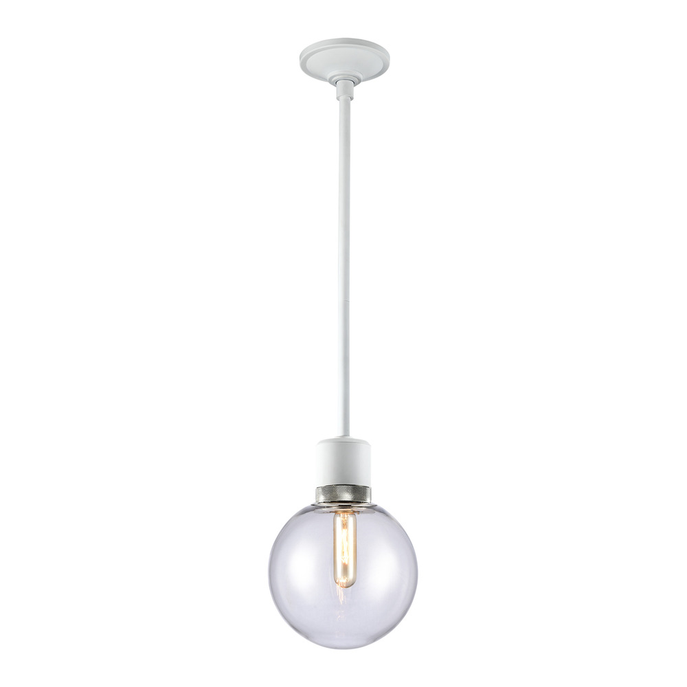 8" High End Clear Glass Globe Shade Pendant Light in Our Chic Matte White Finish with Detailed Polished Nickel Diamond Knurled Metal Band. E26 Medium Base Socket for 12" T10 Filament LED Bulb Not Included.