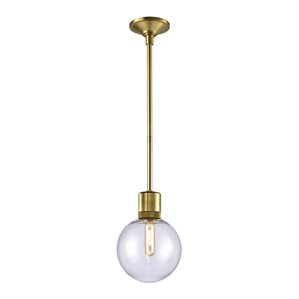 8" High End Clear Glass Globe Shade Pendant Light in Our Premium Aged Brass Finish with Detailed Diamond Knurled Metal Band. E26 Medium Base Socket for 12" T10 Filament LED Bulb Not Included.