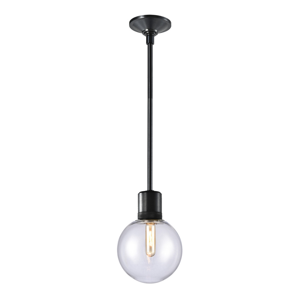8" High End Clear Glass Globe Shade Pendant Light in Our Sleek Satin Brushed Black Finish with Detailed Diamond Knurled Metal Band. E26 Medium Base Socket for 12" T10 Filament LED Bulb Not Included.