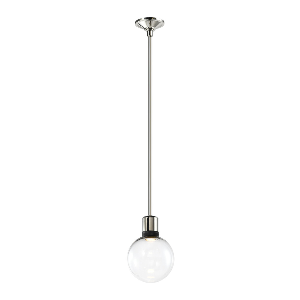 8" High End Clear Glass Globe Shade Pendant Light in Our Luxurious Polished Nickel Finish with Detailed Satin Brushed Black Diamond Knurled Metal Band. Integrated Replaceable LED with 3CCT 3000K, 3500K and 4000K.